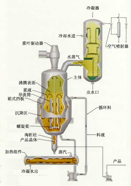 產(chǎn)品簡介:DTB型真空蒸發(fā)結(jié)晶器 DTB蒸發(fā)結(jié)晶器(導(dǎo)流筒結(jié)晶器)是一種高效率的結(jié)晶設(shè)備,由PLC控制物料溫度,其獨(dú)特的結(jié)構(gòu)和工作原理決定了它具有傳熱效率高、配置簡單、操作控制方便、操作